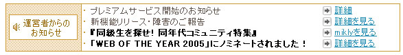 まえまえから気になってたんだけど、最近「WEB OF THE YEAR 2005」にノミネートされました!ていう項目が太字で表示されています。