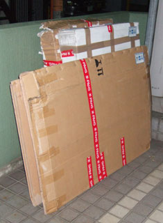 はがして別のものに貼られないようにすぐにやぶれてしまう仕掛けが施してあるので、これで果たして持っていってくれるのか!また来週あたらしいシールをダンボールに貼らなければ・・・
