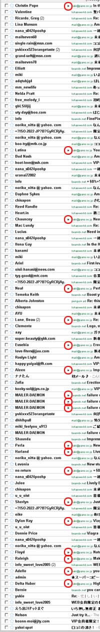 僕が受信しているメールに届いた迷惑メール最新100件を調査したところ、自分のアドレスが宛先欄に記入されているメールは、100件中19件であることが分かりました。つまりその他81件は、ccやbccを使ってメーリングリストのようなシステムを使って一斉送信しているということになります。