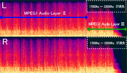 うーむ、やっぱしmp3は高周波数帯が切り取られてしまっているんだなー。