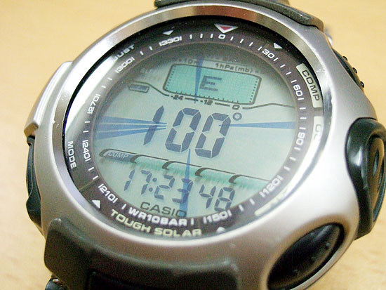 これは画面表面に太陽電池を装備しているタイプで、半永久的に使えるからっていうのでバンドもチタニウムバンドにして一生大事にしようと思ったのに、3年で使えなくなっちゃいました。