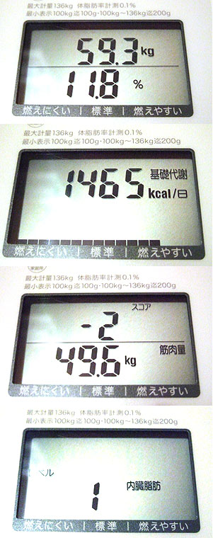 59.3kgの11.8%ってことは、6.997kgが脂肪なのか。ふむふむ。