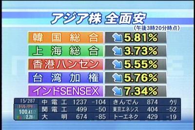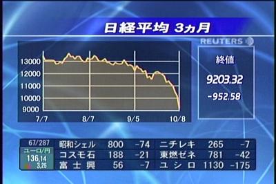 東京:9,203円32銭、2003年6月以来の安値水準。(10/8)