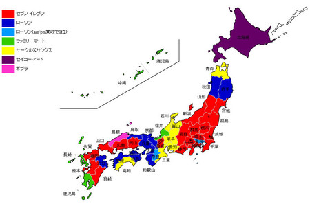 日常 国内コンビニシェア Author yuki Date 2009年5月12日 こういうのが見たかった。 一、やっぱ京都はローソンが多い。 一、セブンは意外と広いエリアをカバーしてる。 一、高知は、四国の中で唯一サークルKサンクスなんやー。 一、ファミリーマートは意外と勢力弱い? ※日経トレンディネ