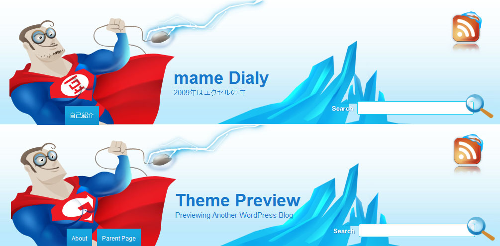 うちの奥さんが、既存のテンプレートのスーパーマン?のマークを「豆」に変えて、ヒゲもはやしてくれました。