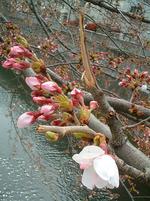 さくら、まだまだ Author yuki Date 2005年4月4日 先週末は、土日に開花するかなあと思っていたんですが、雨の影響もあってかまだ開花とはいえない状態でした。 うーん、微妙ー。しかも枝が折れていた。たぶん誰かが折ったんだろうけど、 ドンマイ!ドンマイ!(何が?) 今日はまた寒いから、開花までにはあと2、3日くらいかかりそうですよ。 ってことで、神田川の桜開花予想は、4月6日ー7日。 天気になったら、最近使っていない一眼レフでも撮影する予定でーす。